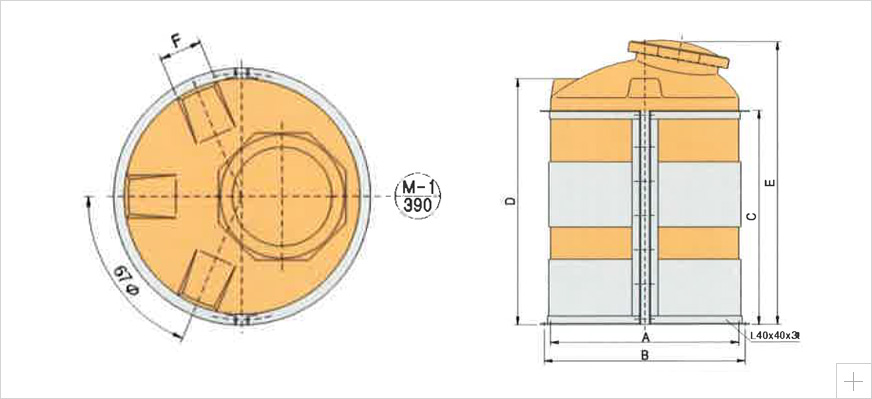 | 품명 (용량L) | A | B | C | D | E | F | M |